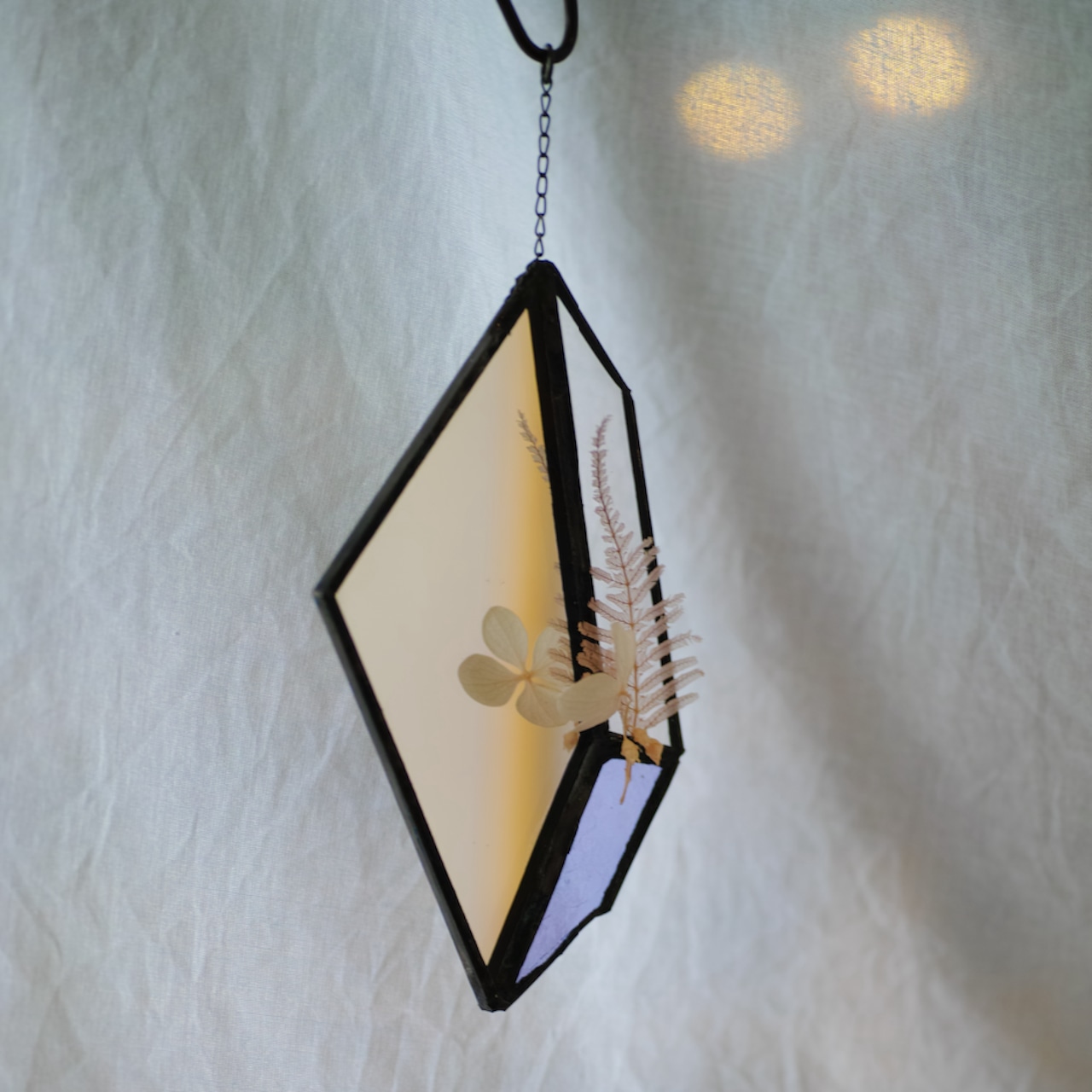 SALE!【patchwork mirror】beige × pink / ノリウツギ、シダ