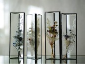 植物を三角ガラス容器に挟み込みました。縦置き・横置きどちらも可。