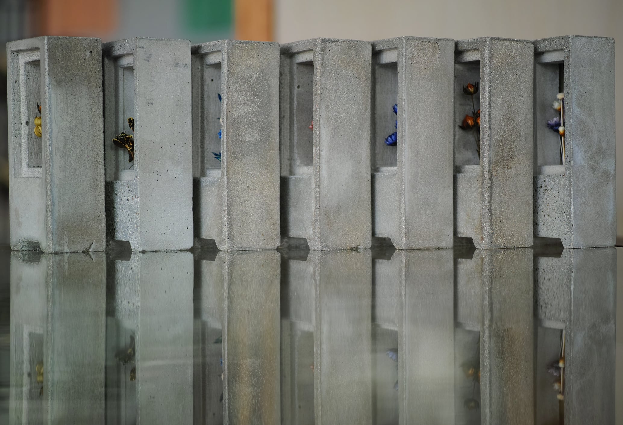 仕様:セメントで成形したオブジェの中にプリザーブドフラワー or ドライフラワーを植栽してあります。
