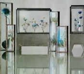 植物を三角ガラス容器に挟み込みました。縦置き・横置きどちらも可。