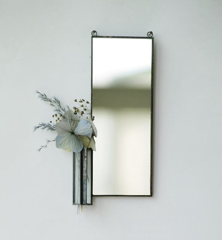 スクエアミラー / 紫陽花、ススキ、かすみ草